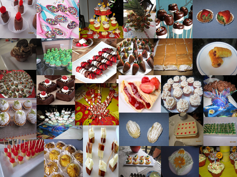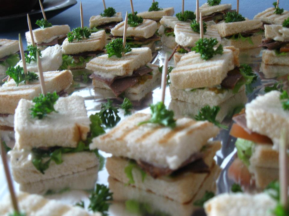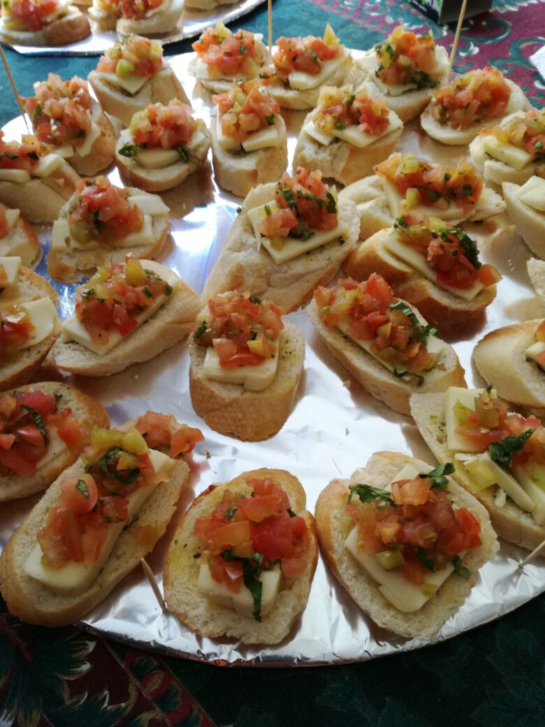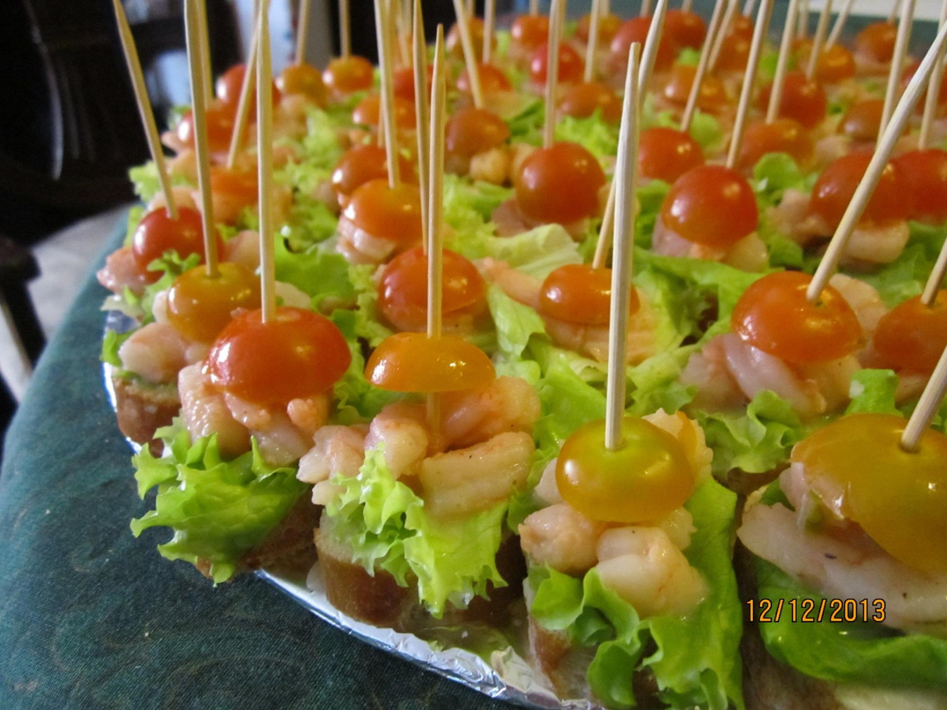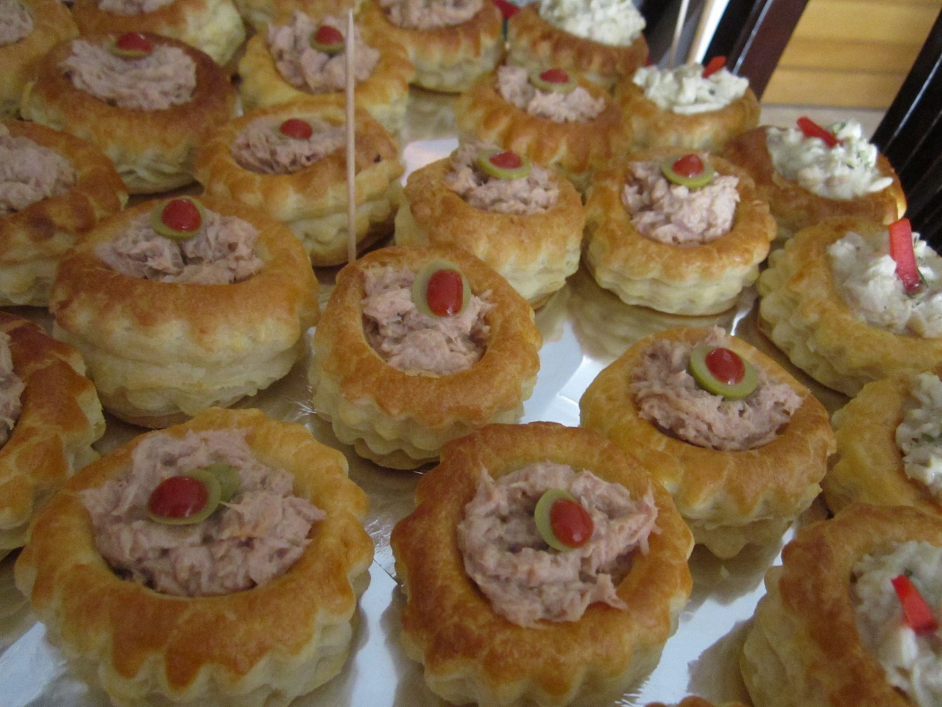 Brochetas de diferentes carnes, canapés variados, empanaditas de carne, pollo, queso, pasteles en hojaldre, huevos de codorniz solos, con acompañamientos o rellenos, , arepitas rellenas o con acompañamientos, crostinis , bruschetas, minipinchos de frutas y verduras, mini sándwich variados, rollitos de wrap rellenos, colombinas de pollo, voulovanes con variados rellenos, alitas acarameladas, dips con varias opciones de acompañamientos, langostinos apanados o en pinchos, croquetas de atún, pollo y yuca, champiñones rellenos, miniceviches, sushi, canastas de platano con diferentes rellenos,tartaletas de frutas, repollitas, tortas y milhojas, entre otros.